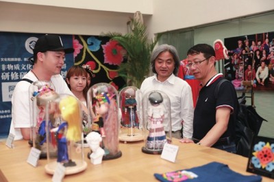 来自阿坝藏族羌族自治州非遗技艺和上海大都市的时尚设计结合会碰撞出怎样的绚丽火花?由文化和旅游部/教育部主办、上海大学上海美术学院和上海公共艺术协同创新中心(PACC)承办的“中国非物质文化遗产传承人群研修研习培训计划(阿坝织绣研修班)”近日举办的结业典礼和成果汇报展上,便可感受到这种碰撞的精彩。牦牛绒的手包简洁而有质感;藏羌织花腰带拼贴在牛仔服饰上,别有风情;都市女孩爱玩的布娃娃穿戴了藏族的民族服饰,竟然有“高定”玩偶的品质……22位四川阿坝州的织绣传承人通过研修培训,不但和上海的设计师共同完成百余件精湛跨界作品,还对自己手中的技艺,多了一种审视的视角与思维方式,他们也非常快乐地把一个月所学所见,带回当地,带动当地的非遗文化创新发展。