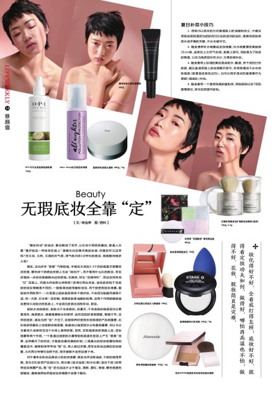 妆化得好不好,全看底打得怎样;底妆好不好,就得看定妆功夫如何。做得好,哪怕再高温也不怕;做得不好,花妆、脱妆简直是灾难。 “美妆科技”的进步,看似解放了双手,让化妆不用层层叠加,普通人只需“像护肤品一样涂抹在脸上”就能化出完美无瑕的妆容,但真的可以这样吗?在又闷、又热、又湿的天气里,用气垫只花1分钟化的底妆,到底能持续多久呢? 其实,这也并非“责难”气垫粉底,毕竟在未来的2-3个月的高温天里要经历的是,哪怕涂个防晒走在路上也会“流白汗”。而不管用什么化的底妆,在妆后增加一步定妆就能解决这些烦恼。如其名,好比“定海神针”,把这妆死死地“钉”在脸上。究竟为何会那么神奇呢?话得分两头来说,油性皮肤和干性皮肤的定妆策略是不同的,一般推荐油皮用蜜粉定妆,而干皮使用定妆喷雾。蜜粉的作用有两个,一方面是让皮肤表面保持干爽状态,不会因为黏腻而感到不适;另一方面,它也有一定抑制、吸附皮肤里油脂的效果。这两个作用都能使底妆更持久地贴合在肌肤上,不会因为皮肤出油而花妆、脱妆。 皮肤太油会脱妆,皮肤太干也会脱妆。在夏天,干性皮肤的角质层水分更易流失,角质脱水,就像海藻缺水时那样,会形成皮肤表面褶皱、粗糙不平。这样的皮肤,底妆当然“定”不住了。妆前保养时使用长效保湿的产品很重要,比如很多明星在上妆前都会做面膜,急速地让角质层水分充盈很重要,但让水分含量持久地保持在这个水准上就有些难。因而,在粉底液涂抹到脸上后,定妆喷雾有两个作用,一个是通过细密的水雾帮助粉底液在皮肤上产生“柔焦”效果,这种晕开了的状态,才是底妆最完美的时刻;二是真正的定妆喷雾独有的覆盖技术,能将粉体牢牢地“锁”住,有人做过评测,用专业彩妆品牌的定妆喷雾,大约两分钟等它自然干后,用手搓都不会把妆搓下来。 对于像专业彩妆品牌设计的定妆喷雾,其实也并没有油皮、干皮的使用界限。因为它们会把产品细分为,哑光感(适合油皮)和水光感(适合干皮)的两种定妆喷雾产品。能“定”的也远远不止于底妆,眼影、腮红、修容,哪怕是唇色都能定,最高境界自然是定妆后喝酒不会留下唇印。 夏日补妆小技巧 1. 用纸巾以按压的方式清理脸上的油脂和灰尘,不建议用吸油面纸是因为皮肤自己分泌的适当的油份,是维持皮肤表面水油平衡的关键,不必去破坏它。 2. 随身携带补水喷雾或定妆喷雾。补水喷雾要距离脸部20cm喷,或者往上方空气处喷,脸朝上即可。目的是为了给皮肤降温,以及为角质层补充水分,方便后续补妆。 3. 随身携带上妆用的美妆蛋或粉扑,蘸湿、挤干后拍打在脸部,建议直接把脸上的妆容晕开即可,非特殊情况不必补涂粉底液(容易造成肤色过白)。也可以用手指点拍遮瑕膏作为局部(瑕疵处)补妆。 4. 随身携带一个透明色调的蜜粉饼,用粉刷轻扫在T区和唇周部位,即可自然提升肤色。