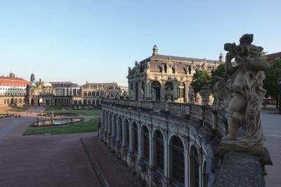 茨温格宫堪称欧洲最重要的后巴洛克风格建筑之一,镀金圆顶的王冠门是德累斯顿的城市标志之一。