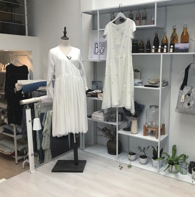 店铺分为上下两层,一楼主要是展示手织布以及产品,包括摩洛哥的羊毛、驼毛手织地毯,意大利的木模印花亚麻,印度的蓝染及手工挑花极细棉等天然材质纺织品。其中不乏超过百年的老店精品,如来自意大利Bertozzi和Busatti家族的手染围裙和手织提花棉。同时也有经过精挑细选的独立小众设计师成衣及配饰,比如,白略在中国大陆地区独家代理的印度手织布品牌MAKU Textiles的成衣系列。