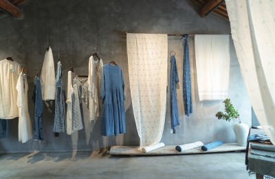 “用纯度极高的印度靛土做蓝染,是西孟加拉邦的传统。一开始,Santanu就决定在白的底色上,只有蓝色这一种颜色。他希望通过限制人们的选择,迫使人把关注点放在织物本身,去探寻它的本质。”白略娓娓道来。的确,现代人的选择不是太少,而是太多。蓝色本身就已经足够丰富又多变了,轻声细语,不急不躁。