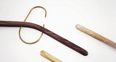 衣架由黑胡桃和纯黄铜制作而成,挂钩部分一体成型,直接插入架身,无需胶水或五金件进行连接。