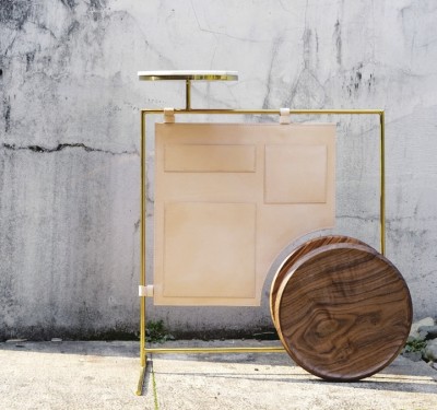 这是一个可以随意移动的边桌,使用了高级的材质搭配,包括不锈钢框架、黑胡桃轮子和大理石桌面。当它不被使用的时候,也依然是一件漂亮的装饰品。