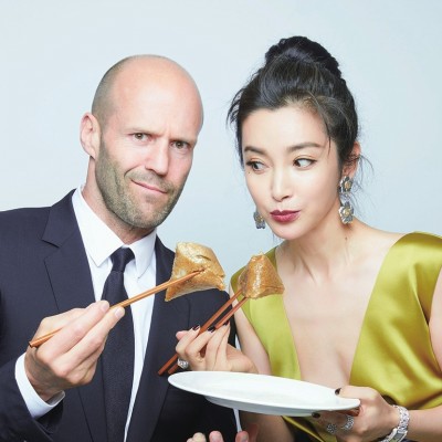 《巨齿鲨》来上海宣传期间恰逢端午节,李冰冰不但向杰森·斯坦森介绍了端午节背后的文化历史和习俗,还请他吃粽子。对于这次经历,斯坦森直言很难忘:“这是我第一次吃粽子,中国文化真的博大精深。”随后,李冰冰在微博晒出两人边吃粽子边摆出搞笑表情暗中“比拼”的照片,十分幽默。