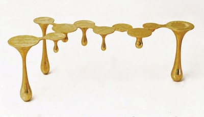 以传统的失蜡浇铸工艺记录铜水熔化时将落而未落的瞬间,造就一张造型独特的几案,蕴含着流动的生命气息。
