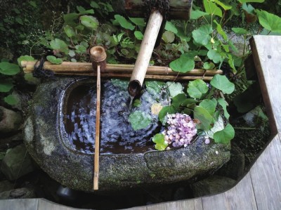 松尾芭蕉的千古名句:闲寂古池塘,青蛙跳入水中央,一声响。梁宗岱说,这俳句如同把禅院里无边的宁静,凝成一滴永驻的玻璃似的梵音。走在京都的大原,听不到嘈杂的市井人声,也没有喧闹的车水马龙,宁静的气息仿佛只听得到周遭泉水淙淙,飞琼漱玉。松尾芭蕉俳句中蛙跃水声回归到长长的幽深禅意,恰如只闻大原的叮咚泉声将人带到清凉的怡人田园。细川与石自然相撞,喷溅如玉,珠雾弥漫。将尘世渲染的烦躁内心置于大原随处可逢的潺潺泉水之中,感受只属于这里的空寂之美。