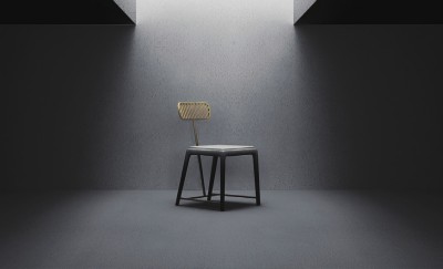 椅子外形纤巧,靠背的形态如同中国传统折扇,优雅精致;造型上适当的倾斜度与弯曲度经过推敲,给予背部良好的支撑。由金属、木材、布艺三种材质组成,且有多种版本呈现。其中,镂空版本的靠背采用细线条金属框架,表现轻盈通透的视觉效果。