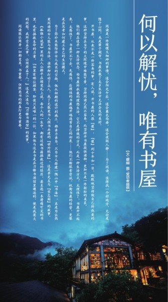 阅读是一件缓慢又细碎的事情。适合阳光午后,适合暮色西垂,适合夜阑人静……为了阅读,值得找一个好地方,无论是隐于山间,或是匿于闹市。书屋承载了太多生活中无法企及的美好。 开书屋,从来不是一件容易的事。有人说,开书屋的人很“傻”,“傻”到十年如一日,默默地坚持做自己所热爱的事。这种坚持在当下的大环境中难能可贵,坚持阅读已然不容易,而坚持开书屋提供读物,更加不是一件轻松的美差。 他们都在追寻一种生活状态,由书屋所承载的理想生活,它不是挣钱的方式,而是一种生活方式。太理性了,书屋开不起来;太感性了,书屋开不下去。先感性,后理性的书屋越开越违背自己的初衷……他们不断探索尝试,权衡书屋的经营,更像是在思考如何建立自己的生活模式。 为了弥补未能陪伴女儿成长的空缺,他从初期的设计到施工,都亲力亲为,只为女儿搭建一隅山中“书海”,本是为让热爱阅读的女儿能与书为伴,谁料却打动了众人,成了无数爱书人捐书共建的“世外桃源”。这是李光友与“坐忘阁”的故事。 《孤独小说家》里的主人公耕平在颁奖礼上说,每个人的一生中,都有过被书籍拯救过的经历,甚至连一本滑稽可笑的书里,也有拯救生命的力量。﹃如果有哪位顾客,即使只是唯一的一位,如果他与这本书是在刀锋书酒馆里邂逅的,便是我莫大的欣慰。我所受益之事,必须授益于人。“这是江凌与”刀锋书酒馆﹄的故事。 阅读能让周身一切都变美。书重要,但照亮书的那盏灯更为重要。