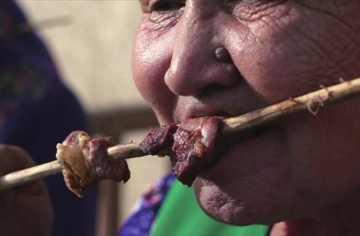 今年6月开播的《人生一串》做到了。这是国内首档呈现国人烧烤情结的专题片,拍摄了30个城市里的500多家传奇烧烤摊。例如,第一集的主题是“无肉不欢”:西昌的烤凉山小猪肉层层腌制,家养土猪肥而不腻;云南昭通一口一串的牛肉小串要用猛火快烤,半熟即食;新疆与世隔绝的罗布人村落流行大把大把的红柳烤肉,只用一把盐,就完全释放罗布羊的鲜甜,烤全羊更是名震中外。再如第二集,主题是“比夜更黑”,这是一个导起来比看起来更需要勇气的专题——拍摄了活烤毛毛虫、烤蚕蛹、烤蛾子等各种黑暗料理。
