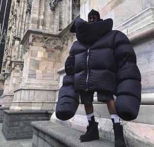 坦白说,这胖子设计师的魅力也一度让我惊叹和着迷,当然,那些出格的服装设计,包括强烈的用色和粗暴的图案,肯定会抓人眼球,敢不敢穿则作别论。令我最为佩服的地方,就是他品牌和设计背后的正能量和大理念:KISS THE FUTURE, AVERAGE NEVER WIN, WILD IS THE WIND等等,当中往往不乏环保、反恐、励志、激情与科技等题材元素,总之一律鼓吹活得前沿、干得果敢和玩得认真。虽然大部分W<的服装都属于超前卫和不简单的搞怪之作,但它们却绝非无厘头或无的放矢的恶搞产物。