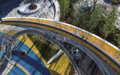 高楼林立的都市,总是会有莫名的压迫感。快节奏的生活,周遭总是拥挤、嘈杂……在这个地方,哪里可以找到人类的乐园?记忆中的那个公园,似乎是唯一能令人忘记自我,忘记焦虑,变回纯粹的地方。亚尔杰说:“在九重天上有八个乐园,第九个乐园在何处?在人类的胸怀里。只有幸福者住在乐园里,而幸福却住在人类的胸怀里。”到真正的乐园做一次放松身心的闲游,也许可以找到属于你的复乐园。 长春中国 探索“鲸”喜 长春作为森林城市,山谷纵横,森林繁茂。优美的自然环境成为拾光公园设计灵感的来源。它位于长春南部新城,为长春的市政代建公共绿地。周边多为新建住宅和新建建筑,缺少街区型公共开放空间。设计师通过地形塑造、空间围合,让人感受到高高低低不同的变化。 道路交叉口的街角,需设计地标性要素,增加场所的记忆点。设计师希望设置一个异于周边环境、超越于森林谷地的非日常的装置性雕塑,“鲸奇”的想法应运而生。引入海洋生物“鲸鱼雕塑”到内陆森林城市,消解地理学和心理学上的距离,在静止单调的城市生活中增加自由的趣味与新意。 边上的隔墙不是仅放置一面阻挡视线的墙,而是采用翻板景墙的互动方式,激活场地边缘活力,鼓励大家在此游戏、涂鸦与创作,在不同使用者的创造下产生不同的面貌。 公园还设有弹跳跑道,激发出人的无限探索欲望。兔子跳、青蛙跳、跑跑跳跳……身体和灵魂均在这里得以生长。 随着鲸鱼的向内延伸,有机曲线构成的儿童活动场地以怀抱的姿态迎接来自四面八方的游客。椭圆和自由曲线形成功能性的综合场地。蓝色与黄色的EPDM塑胶地垫拼贴组合,形成几何化场地,容纳安放趣味和想象。 起伏的地形,高起的平台,升高的围墙,共同围合成相对独立的场所。层层递进的空间充满期待和戏剧性,引导人的停驻。 美国威廉斯堡 工厂“冒险” 远在威廉斯堡,同样有一个设计感十足的公园。新建的多米诺公园中有纽约最吸睛且最创新的游乐场。它由著名艺术家Mark Reigelman设计,为了向多米诺糖厂和其制糖历史致敬,他把游乐场的每一个部分,都和制糖过程中的一环相关联。到游乐场“冒险”的小家伙们,似乎变身成了一颗糖,在游乐场特殊的管道、传送带和弹射滑梯之间穿梭。 孩子可以从小屋经过不锈钢滑梯爬向筒仓。小屋室内,也布置了黄色攀爬架,满足孩子的探索欲望。从筒仓通往工业集装箱的楼梯扶手也是靓丽的黄色。筒仓作为公园的最高点,在这儿还能欣赏到曼哈顿天际线、威廉斯堡大桥、曼哈顿大桥,以及其他多米诺公园周边的无与伦比的美景。 游乐场由一个抬高的小屋,一个高高的筒仓,和一个工业集装箱组成,为了与老工厂的色调相配,Reigelman将亮黄色,青绿色,绿色和拉丝金属色与现存的工业文物和工业元素相结合。设计时在颜色、形态、材料和布局方面都受到了多米诺制糖厂的影响,创造了一个能满足探索和好奇心的空间。其他诸如不锈钢滑梯、攀爬处,以及走道,都能令人想起老工厂的复杂建筑和基础设施。