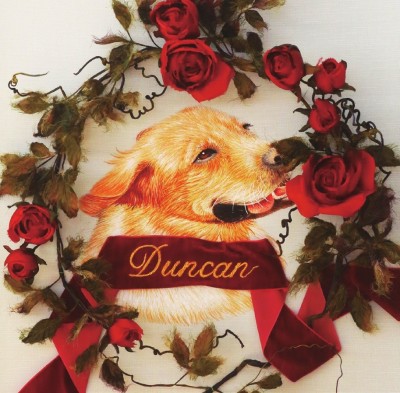 然而技法都是熟练功,潘哒认为刺绣技法可以练得出来,但如何才能将物绣“活”,才是真正的学问。如果看过潘哒的绣作,相信都会对那幅绣着名叫Duncan的拉布拉多犬的作品留下深刻印象,因为这幅绣品和潘哒参照的原图几乎一模一样。这是潘哒用湘绣的散套针,结合法国Dmc的纯棉绣线,至少绣了八层,用了上百种颜色的线才绣制而成的。