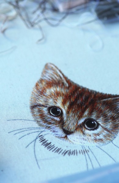 潘哒因为口袋喵的创作者Hiroko Kubota开始绣猫