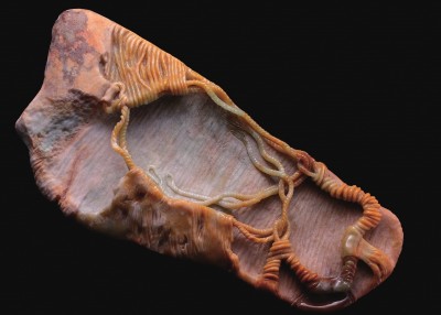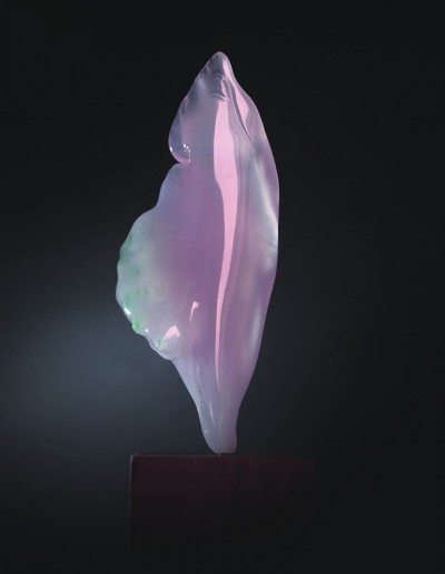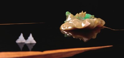 王朝阳说:“磨玉是天人合一的过程,磨玉人在读懂和唤醒自然之大美时会有物我两忘的喜悦心情,物我两忘在发现中实现,这是个过程,不能有预判,也不能有回忆。” 30年求艺路,学无止境 人们常常说玉有灵性,大自然的馈赠自有上天的机缘,一件优秀的作品,有时不在于你用什么样的技法去表达,遵循自然法则,减少刻意的雕琢,它会自然而然给你答案。王朝阳也算今日中国玉雕界可圈可点的人物,被誉为中国玉雕界的“齐白石”。求艺之路30年,王朝阳认为,一件好的玉雕作品,重要的不是原材料是否贵重,每一块原料都有可取之处,就看雕琢的人能否读懂,如何创意,如何琢磨。 王朝阳是上世纪70年代生人,老家南阳,正是中国的玉雕之乡。父亲是美术教师,从小他就耳濡目染,深受传统美学的滋养。三十年磨一剑。可是要成为一代玉雕大师,时间的累积仅仅是基础,你还需要天赋异禀,同时独具审美眼光,付出比常人更多的努力。 纵观他的学艺之路,他把自己的成长归纳为五个阶段,似乎人生也经历了五次迭代升级。 王朝阳进入玉雕行业,尚是上世纪80年代,他开始学习传统样式雕刻,后来,为了使所雕造型更加生动准确,他又从美院体系里学习了“学院派”(主要是法派与苏派)的造型技法,以提高写实能力。这10年,少年初出茅庐,熟能生巧的还是“手上功夫”,鲜少挖掘翡翠种、水、色上的深意。 进入下一个10年,已然迈入千禧之年。单是造型题材已不能满足王朝阳对翡翠雕刻的渴求。他开始重新认识材料,思考材料对雕刻师的意义;同时,也开始思考现实生活对个体生命的意义。 “我尝试着把对材料的重新认识和对现实生活的理解,用俏色巧雕成作品展现出来。这一时期,我不断地在寻找一些有特色的材料,不断地从各种媒体、媒介渠道获取灵感和创意,再根据材料的特点进行巧思。这一时期我重点关注的是想法,整日都在想点子、搞创意、取巧思。” 巧雕技法,可以更多从创意层面发扬雕刻师对玉的理解、对自然的理解。打个比方,翡翠原石上有一点绿,还有一点红。绿的部分,做成叶的样式,红的部分做成花型。这是自然带给我们的联想。如果原石有一点白,还有一点红,你也可以从自然界中找到对应的呈现,可能丹顶鹤更能体现它的巧思。这是巧借玉石本身的形态、颜色质感,来做发散性的创意巧雕。 直到2008年,俏色巧雕已经成为玉雕界的惯用技法,并不满足于此的王朝阳,开始大量研究和借鉴中国古典的水墨写意,通过构图和减工营造出空灵绝妙的画面,让观者产生联想,恍惚间置身于这个美妙的世界。所谓“意境”,跃然玉上。 创作之变,如凤凰涅槃 在用极少的雕刻、极少的构思去面对每一块材料时,貌似简单,其实对雕刻师以及材质的要求极高。 每一块天然的材料都有很多不完美,裂纹、棉絮、厚薄、水头、色彩、种质,每一项对作品的影响都极大。再加上翡翠这种材质的变化又极多,有时色彩、种水的细微变化,或者厚薄多1毫米少1毫米给人的感受都是天壤之别。 怎样在不完美的情况下使其变得完美,怎样在极少雕刻(形象雕刻)的情况下显得丰富,都是难题。王朝阳认为,雕刻越少越容易寡淡,裂纹棉絮越难处理。这些对雕刻师的综合审美素养,以及对材料的认知都提出了很高的要求。 一路艰难地前行,他尽量摒弃自己多年练习的技法,忘掉自己引以为傲的想法,渐渐进入一种无我的状态……“我知道只有这样才能全身心地体会到材质最微妙的变化。经过一段时间的磨练,我惊奇地发现即使不要任何形象雕刻,不再叙事,不再有文学感动,作品同样可以丰富感人。这时雕刻才完全进入了抽象状态(不指向任何自然物),才开始了真正的质变。” 这段时期对于一个雕刻师来说面临的挑战极大,不但要克服炫技,克服诸多想法,更重要的是不会轻易得到他人的认可,包括同行专家。王朝阳深知,前方的路仿佛一片漆黑,没有抓手也看不到一丝光亮。这个时候,没有了金钱观念,没有了名利及个人喜好,有的只是坚信太阳会照常升起,随即让他进入另外一个维度空间的期盼与喜悦。 大道至简,翡翠“心”美学 玉雕之路犹如修炼之路,突破之前的“小我”,才能实现未来的“大我”。现在,王朝阳主张“少即是多”,把玉雕的形象化至最简,则玉雕的审美维度、材料之美,甚至是想象力被无限放大。 意境写意,宛如高山流水,荡气回肠。简之道,让大量留白处的翡翠自然本色被满满呈现出来。那或清淡或浓艳的色泽,泛着幽幽微光,那细腻温润的质地让人不由得想去触摸。“对比之下,任何雕琢都显得那么多余、那么微不足道,仿佛是对自然的不敬。在这一刻,我感受到了美的真实。在大自然的鬼斧神工面前,我们能做的只不过是让这种美更加真实,更加具体。” 琢玉重要的是要发自内心和玉石对话。读懂玉石的特点和心性,玉雕作品才能符合当代人的审美观。好作品的神韵来自雕刻者的人生积淀和生活阅历,把自己真正的感悟和理解融入玉雕之中,以自己独特的艺术形式表现出来,这才是最重要的。 王朝阳有所感悟,自然为大美。玉雕一定是“玉”在前,“雕”在后,自然之物,琢为修饰,为的是突出玉石的天然大美。如果颠倒次序,为雕刻某一形象而把材料的美忽略或者是破坏掉,则是本末倒置,违背了玉石的本质。 极简之后,着重的是大形制的力量,随形琢磨。除去多余的部分,最大限度体现玉石