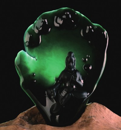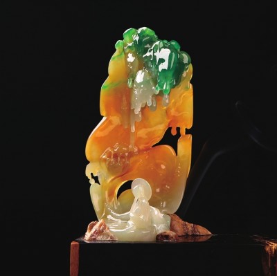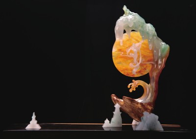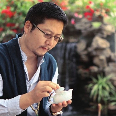 王朝阳说:“磨玉是天人合一的过程,磨玉人在读懂和唤醒自然之大美时会有物我两忘的喜悦心情,物我两忘在发现中实现,这是个过程,不能有预判,也不能有回忆。” 30年求艺路,学无止境 人们常常说玉有灵性,大自然的馈赠自有上天的机缘,一件优秀的作品,有时不在于你用什么样的技法去表达,遵循自然法则,减少刻意的雕琢,它会自然而然给你答案。王朝阳也算今日中国玉雕界可圈可点的人物,被誉为中国玉雕界的“齐白石”。求艺之路30年,王朝阳认为,一件好的玉雕作品,重要的不是原材料是否贵重,每一块原料都有可取之处,就看雕琢的人能否读懂,如何创意,如何琢磨。 王朝阳是上世纪70年代生人,老家南阳,正是中国的玉雕之乡。父亲是美术教师,从小他就耳濡目染,深受传统美学的滋养。三十年磨一剑。可是要成为一代玉雕大师,时间的累积仅仅是基础,你还需要天赋异禀,同时独具审美眼光,付出比常人更多的努力。 纵观他的学艺之路,他把自己的成长归纳为五个阶段,似乎人生也经历了五次迭代升级。 王朝阳进入玉雕行业,尚是上世纪80年代,他开始学习传统样式雕刻,后来,为了使所雕造型更加生动准确,他又从美院体系里学习了“学院派”(主要是法派与苏派)的造型技法,以提高写实能力。这10年,少年初出茅庐,熟能生巧的还是“手上功夫”,鲜少挖掘翡翠种、水、色上的深意。 进入下一个10年,已然迈入千禧之年。单是造型题材已不能满足王朝阳对翡翠雕刻的渴求。他开始重新认识材料,思考材料对雕刻师的意义;同时,也开始思考现实生活对个体生命的意义。 “我尝试着把对材料的重新认识和对现实生活的理解,用俏色巧雕成作品展现出来。这一时期,我不断地在寻找一些有特色的材料,不断地从各种媒体、媒介渠道获取灵感和创意,再根据材料的特点进行巧思。这一时期我重点关注的是想法,整日都在想点子、搞创意、取巧思。” 巧雕技法,可以更多从创意层面发扬雕刻师对玉的理解、对自然的理解。打个比方,翡翠原石上有一点绿,还有一点红。绿的部分,做成叶的样式,红的部分做成花型。这是自然带给我们的联想。如果原石有一点白,还有一点红,你也可以从自然界中找到对应的呈现,可能丹顶鹤更能体现它的巧思。这是巧借玉石本身的形态、颜色质感,来做发散性的创意巧雕。 直到2008年,俏色巧雕已经成为玉雕界的惯用技法,并不满足于此的王朝阳,开始大量研究和借鉴中国古典的水墨写意,通过构图和减工营造出空灵绝妙的画面,让观者产生联想,恍惚间置身于这个美妙的世界。所谓“意境”,跃然玉上。 创作之变,如凤凰涅槃 在用极少的雕刻、极少的构思去面对每一块材料时,貌似简单,其实对雕刻师以及材质的要求极高。 每一块天然的材料都有很多不完美,裂纹、棉絮、厚薄、水头、色彩、种质,每一项对作品的影响都极大。再加上翡翠这种材质的变化又极多,有时色彩、种水的细微变化,或者厚薄多1毫米少1毫米给人的感受都是天壤之别。 怎样在不完美的情况下使其变得完美,怎样在极少雕刻(形象雕刻)的情况下显得丰富,都是难题。王朝阳认为,雕刻越少越容易寡淡,裂纹棉絮越难处理。这些对雕刻师的综合审美素养,以及对材料的认知都提出了很高的要求。 一路艰难地前行,他尽量摒弃自己多年练习的技法,忘掉自己引以为傲的想法,渐渐进入一种无我的状态……“我知道只有这样才能全身心地体会到材质最微妙的变化。经过一段时间的磨练,我惊奇地发现即使不要任何形象雕刻,不再叙事,不再有文学感动,作品同样可以丰富感人。这时雕刻才完全进入了抽象状态(不指向任何自然物),才开始了真正的质变。” 这段时期对于一个雕刻师来说面临的挑战极大,不但要克服炫技,克服诸多想法,更重要的是不会轻易得到他人的认可,包括同行专家。王朝阳深知,前方的路仿佛一片漆黑,没有抓手也看不到一丝光亮。这个时候,没有了金钱观念,没有了名利及个人喜好,有的只是坚信太阳会照常升起,随即让他进入另外一个维度空间的期盼与喜悦。 大道至简,翡翠“心”美学 玉雕之路犹如修炼之路,突破之前的“小我”,才能实现未来的“大我”。现在,王朝阳主张“少即是多”,把玉雕的形象化至最简,则玉雕的审美维度、材料之美,甚至是想象力被无限放大。 意境写意,宛如高山流水,荡气回肠。简之道,让大量留白处的翡翠自然本色被满满呈现出来。那或清淡或浓艳的色泽,泛着幽幽微光,那细腻温润的质地让人不由得想去触摸。“对比之下,任何雕琢都显得那么多余、那么微不足道,仿佛是对自然的不敬。在这一刻,我感受到了美的真实。在大自然的鬼斧神工面前,我们能做的只不过是让这种美更加真实,更加具体。” 琢玉重要的是要发自内心和玉石对话。读懂玉石的特点和心性,玉雕作品才能符合当代人的审美观。好作品的神韵来自雕刻者的人生积淀和生活阅历,把自己真正的感悟和理解融入玉雕之中,以自己独特的艺术形式表现出来,这才是最重要的。 王朝阳有所感悟,自然为大美。玉雕一定是“玉”在前,“雕”在后,自然之物,琢为修饰,为的是突出玉石的天然大美。如果颠倒次序,为雕刻某一形象而把材料的美忽略或者是破坏掉,则是本末倒置,违背了玉石的本质。 极简之后,着重的是大形制的力量,随形琢磨。除去多余的部分,最大限度体现玉石