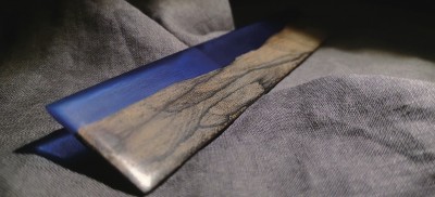 山水纹的树木,碧蓝色的树脂,二者结合制成的尺子,恰到好处。