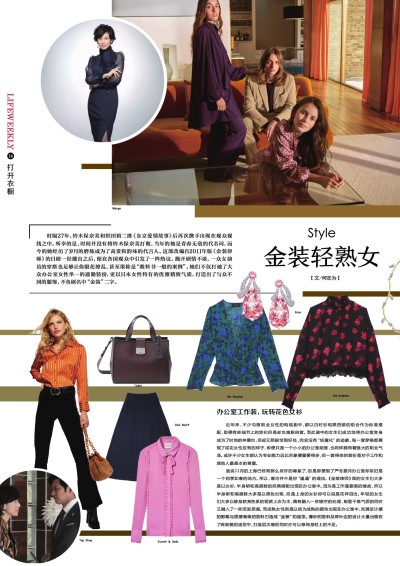 时隔27年,铃木保奈美和织田裕二继《东京爱情故事》后再次携手出现在观众视线之中。所幸的是,时间并没有将铃木保奈美打败,当年的她是青春无敌的代名词,而今的她经历了岁月的磨练成为了高贵和韵味的代言人。这部改编自2011年版《金装律师》的日剧一经播出之后,便在各国观众中引发了一阵热议。抛开剧情不谈,一众女演员的穿搭也足够让你眼花缭乱,甚至堪称是“教科书一般的案例”。她们不仅打破了大众办公室女性单一的通勤装扮,更以日本女性特有的优雅精致气质,打造出了与众不同的服饰,不负剧名中“金装”二字。 办公室工作装,玩转花色女衫 近年来,不少勾画职业女性的电视剧中,都以白衬衫和黑西装的组合作为标准搭配,即便有些细节上的变化但是却也难脱俗套。而此剧中的女生们成功地将办公室变身成为了时尚的伸展台,但却又那般恰到好处,完全没有“妖魔化”的迹象。每一套穿搭都展现了成功女性应有的样子,即便只是一个小小的办公室助理,也同样拥有着强大的职业气场。或许不少女生都认为专业能力远比形象要重要得多,但一套得体的装扮是对于工作和其他人最基本的尊重。 虽说11月的上海已经有那么些许的寒意了,但是即便到了严冬腊月办公室却依旧是一个四季如春的地方。所以,寒冷并不是你“邋遢”的理由。《金装律师》里的女生们大多是以女衫、半身裙和高跟鞋的经典搭配出现在办公室中。因为是工作通勤装的缘故,所以半身裙和高跟鞋大多是以黑色出现,但是上身的女衫却可以说是花样百出。年轻的女生们大多以修身款亮色系的短款上衣为主,偶有融入一些镂空的处理,彰显干练气质的同时又融入了一些活泼质感。而成熟女性则是以较为成熟的颜色出现在办公室中,充满设计感的剪裁与质感高级的面料打造成“金装”的造型。薄纱的面料及荷叶边的设计大量出现在了保奈美的造型中,打造层次感的同时亦可以修饰身材上的不足。 外出通勤装,风一样的女子 《金装律师》中所有女生的外出通勤装倒是一改工作装的多变,都清一色地选择了长款风衣。如何将风衣穿出时尚的感觉?相信这也是一直以来困扰着不少女生的问题,别人穿风衣是十足的英伦风情,而自己却始终穿不出那个范儿。问题的关键,还是在于其他单品的搭配以及风衣的穿着方式。 “教科书”上的女生大多以裙装作为内搭,她们的风衣都是随意地敞开着,基本不会扣上扣子,更别提腰带了。今年的时尚圈也同样掀起了这样一股流行热潮,风衣不再是人们一贯印象里西装领、双排扣、防风防水的面料。不少设计师在风衣的设计上大做文章,下摆做成了宽大A字效果,融入了褶皱剪裁;还有进行了拼接的处理,包括格纹色彩的拼接,皮毛材料的拼接;也有人采用了丝缎面料来制作风衣,不仅颜色鲜亮,同时还自带垂坠感……此外,小猫跟的高跟鞋是风衣的最佳拍档,即便只是几公分的跟却能让你的整体气场提升几个等级,千万别再贪图那一点点的舒适,用平底鞋甚至是运动鞋去搭配风衣了。 日常休闲装,一条连衣裙搞定 女生的衣柜里最多的单品必定非连衣裙莫属了吧?剧中的女生们也示范了不少连衣裙的“正确打开方式”。 首先,秋季连衣裙的长度自然是以长款为主,颜色方面则是以大地色系或是冷色系为主,避开艳丽的明亮色系。当然也可以选择一些充满艺术感的几何图案代替,这样不仅更加适合季节,同时也可以塑造出高贵的淑女气息。其次,不用去在意连衣裙面料的厚薄,只需要注意面料是否优质。即便是冬天室内的空调就足以让你驾驭任何连衣裙了,你需要“划重点”的是面料的质量。优质的面料不仅可以让你充满高级感,同时也不会让你在脱去外套的时候产生静电“噼里啪啦”地一阵作响,甚至还伴随着尖叫。最后,冬季连衣裙的剪裁可以选择一些层次感相对较为复杂的,这样一方面可以强调出裙子的设计感,另一方面则是对体型起到修饰作用。