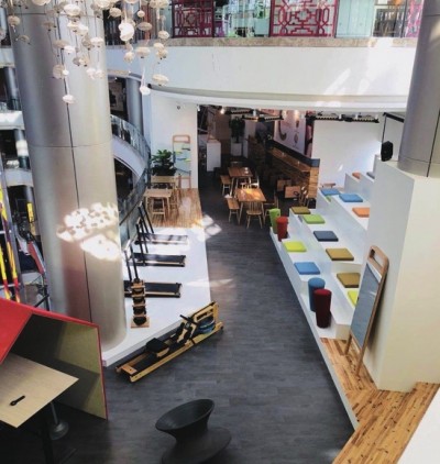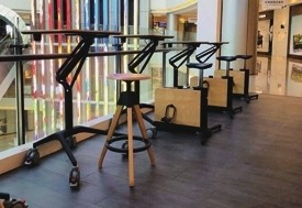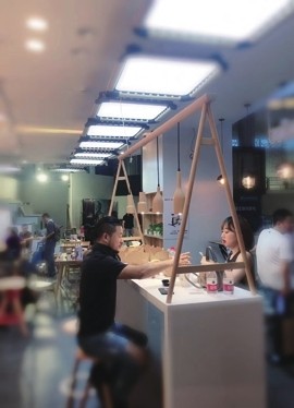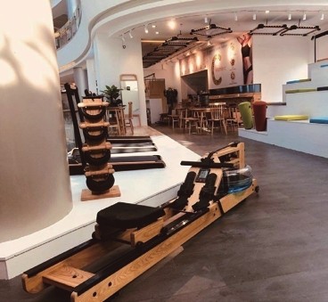 咖啡吧在都市中屡见不鲜,以自然质朴的木质风格装点的咖啡吧也不在少数,三迦健康科技有限公司设计的咖啡吧却有自己的亮点。放眼望去,长条的木质吧台桌,首先映入眼帘。视线向下移动,预设中配套的椅凳并未出现,取而代之的是健身单车。不过,这几辆健身单车是由与桌子同色系的木材制成,机械的力量与原木的天然质感在这里和谐统一。 木头做的运动器械 这不是一家普通的咖啡吧,而是“运动咖啡吧”。向内走去,它的运动特性就越发明显。经过吧台,走道的两边被设置成了不同的功能区域:一边是阶梯式的休息区域,每层阶梯上放着各种颜色的方形榻榻米坐垫和形似不倒翁的圆柱形座椅;另一边,则是其他的运动器械,有走步机、瑜伽机、划船机、举重器械等。它们和门口的健身单车一样,除了基本器械,其余部分使用的都是木材,增添了轻松休闲的气氛。它们仿佛在告诉来往于咖啡吧的人:端着咖啡享受悠闲时光、放空自我的同时,身体也可以得到锻炼。其实运动很简单,可能在走过路过时停下拉伸的零散时间,或是坐在椅子上边品尝咖啡,边慢踩踏板的下午茶里,就已经完成了。 选择木材的另一原因是,它是一种可持续和能够扩散气味的材质。在咖啡吧这样的公共场所里,在木材上滴上几滴精油,经由人们使用运动器械带动其转动,香味便会进一步飘散出来,也有助于人们舒缓情绪。 但制作木质运动器械并非易事。实木材质切割时一不注意,就会引起整块木板的爆裂,许多木材就被浪费了。这样的情况在打造木质运动器械时就更为普遍,因为它们都是由两种以上的材质完成,还需要设计团队充分考虑到材质间的磨合与对接。好在反复试验和打造后,成品还是让人惊喜的。 健身变得轻松随性 吧内健身器械的选用体现了团队的精巧心思。比如考虑到咖啡吧的公共性和开放性,以及运动咖啡吧的定位不是与专业全面的健身房比肩,所以跑步机这样“大动静”的运动器械不太适宜,取而代之的是较为轻盈、安静的走步机。再如瑜伽机则是团队的特别设计。它的主体是一辆健身单车,座位则是一颗瑜伽球,让使用者可以同时感受到多种锻炼方式。这些都让受到场地条件限制的健身变得轻松和随性。 这家运动咖啡吧的设立,得益于品牌运营总监王铮二十余年的品牌服务经验。近几年来,他发现随着更多的九零后,甚至是九五后进入职场,他们对公司文化和设施提出了自己的要求。他们偏爱休闲的办公方式,希望把健身房搬到办公场所内,以缓解工作压力和情绪,但并不希望健身区域过于刻板;工作之余他们对生活方式和健康、身材管理也颇有要求。于是,“三迦”的团队设计了运动咖啡吧这样可以随时进行轻运动的场所,自如又方便。在他们看来,这只是未来的公共场所和办公环境愈加多元化发展的开始。