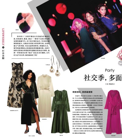 每年的十二月似乎都是女生们最为忙碌的月份,各类派对、晚宴、聚会……将每个人的行程表都安排得满满当当。对于设计师们而言,冬日的礼服裙相较夏天,无疑存在着更大的发挥空间,无需再被天气所牵制,可以从面料的种类、剪裁的方式、细节的处理将自己的创意发挥到淋漓尽致。出席不同形式的场合所需要的礼服裙自然也是不同的,选择一件恰如其分的“战衣”更是尤为关键的。女生们!这个社交季,你们准备好了吗? 晚宴酒会,质感最重要 圣诞节、跨年夜可以说是十二月的两大重头戏,不少公司都会借着它们的由头举办各种晚宴酒会。虽说有些可能会有dress code的要求,但是万变不离高贵优雅之宗。中长款的礼服裙依旧是女生们出席此类宴会的主流服装,如果想要一份与众不同的感觉,不妨可以从面料和剪裁上出奇制胜。 选择富有光泽感的面料可以轻而易举地帮助女生们提升自己的气场。丝滑柔顺的真丝搭配上垂坠感的剪裁,尽显温柔之感。近几年大热的天鹅绒面料,今年也被应用到了礼服裙的设计之中,给人以雍容华贵之感。绉纱的质地本身虽然没有什么光泽感,但是设计师们或是在纺织时加入了金丝银线,又或是在后期加入了提花刺绣,让礼服同样熠熠生辉。对于年轻女生们而言,礼服裙的剪裁上可以选择开衩、挖剪、镂空,将性感进行到底。而对于稍稍年长一点的女士们而言,倒不妨可以选择长袖款的连衣裙,展现出沉稳的风韵。 家居轰趴,随意又温暖 “孤单是一个人的狂欢,狂欢是一群人的孤单。”节日里的城市无论哪里都是人山人海,似乎人们宁愿去嘈杂的街头人挤人,借此证明自己并不孤单,看似热闹的表面下却是容易空虚的内心。但是与其形式主义地去过一个节日,倒不如约上三五好友在家里办一场仪式感十足的温馨轰趴。 轰趴是音译英语中home party一词,顾名思义就是居家派对的意思。虽说是居家派对,但是其仪式感却一点也不输给其他派对。女生们精心打扮一番盛装出席自然是不可或缺的,此外大家还会带上自己准备的食物、喜欢的美酒,甚至是互相交换的节日礼物。所以,如果要兼顾派对的仪式感又要符合居家主题,也让不少女生头疼不已。一件羊毛的针织礼服裙是一个不错的选择。对于身材姣好的女生们而言,一件极简的羊毛针织礼服裙便足以让你成为派对上的焦点。如果女生们因为秋冬季节而疏忽了对自己的身材管理,那么不妨可以尝试一下宽松款的针织礼服裙,搭配上开衩或是V领的剪裁处理,慵懒中又透露着些许性感气息。 夜店派对,做最闪亮的星 面对一堆节日,夜店作为时下年轻人热门的聚会方式又怎么会缺席呢?既然是节日,自然不能像平日里卫衣搭短裤这么朴素地出场,亮片礼服是个不错的选择。 设计师们这一季在亮片的制作上可谓是花了一番心思的。以往常见的塑料珠片依旧是主流,但是设计师们却将它们的颜色、大小和形状做出了不少改动。一贯以银色示人的珠片这一季出现了不少蓝色、绿色、粉色、金色的色彩;在拨动或是翻转之后可以形成不同颜色,这些创意也出现在了礼服裙的设计上;还有大块的不规则几何图形珠片也被制成流苏融入到了礼服裙的设计之中。倘若你还嫌不够,那么不妨可以尝试那些天然贝母所打造的珠片礼服裙。贝母被打造成了极薄的珠片后缝制在了礼服裙上,自带的珠光效果虽没有塑料亮片那么闪亮夺目,却更具质感。