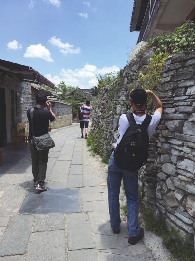 天空蔚蓝。我望着前面的旅人,旅人透过镜头,我们都眺望着远方。
