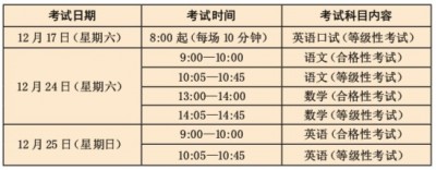 上海市中等职业学校学业水平评价公共基础课程考试将于12月开考,包括专业技能学习成果记录和公共基础课程考试两部分内容。公共基础课程考试包括语文、数学、英语、信息技术基础四门科目。 缺考考生不得再次报考 每位学生仅有1次报考中职学业水平考试的机会,缺考考生不得再次报考。学生报名参加中职学业水平考试合格性考试或等级性考试即同时报考语文、数学、英语三个科目的考试。合格性考试和等级性考试不可分年报考。 合格性考试成绩不合格的学生,由所在学校自行组织补考。 合格性考试为学生必考 本次学业考分为合格性考试和等级性考试。本市中等职业学校在籍学生,通过其学籍所在学校集体报名的方式进行报名。 2016年12月考试科目包括语文、数学、英语。 语文、数学和英语3门科目分设合格性考试和等级性考试,其中,合格性考试为学生必考。 语文、数学合格性考试和等级性考试实行分卷合场,一次完成,均采用书面笔试方式。英语合格性考试(含听力测试)和等级性考试的书面笔试也实行分卷合场,一次完成。 合格性考试成绩分“合格”与“不合格”,合格分数线以卷面成绩的标准分值划定。 合格性考试报名对象 本市全日制普通中等职业学校2015学年入学的二年级在籍学生、2014学年入学的四年制三年级在籍学生(指本市中考生源在籍学生、随迁子女、新疆内职班学生)需参加学业考合格性考试。 中高职贯通、中本贯通二年级在籍学生须参加语文、数学、英语三门科目的合格性考试。 值得一提的是,上海音乐学院附属中等专科学校、上海市体育运动学校、上海体育学院附属竞技体育学院、上海戏剧学院附属戏曲学校、上海市马戏学校、上海市第二体育运动学校、上海市舞蹈学校的在籍学生,由学校组织自愿报名参加合格性考试。 等级性考试成绩以等级呈现 等级性考试为学生选考,有相应需求的学生可根据自身情况自愿报名参加等级性考试。等级性考试成绩以获得相应科目合格性考试“合格”成绩为前提。英语等级性考试中的口语测试另行单独组织,采用人机对话方式。 等级性考试成绩以等级呈现,其评定办法为:以获得相应科目合格性考试“合格”成绩为前提,根据学生相应科目合格性考试和等级性考试的得分之和(满分为150分),按获得等级性考试有效成绩的考生(即缺考或未得分的考生除外)总数的相应比例划分等级,位次由高到低分为A、B、C、D、E五个等级。其中A约占15%,B、C各约占30%,D约占20%,E约占5%。凡参加等级性考试的学生,如相应科目合格性考试成绩为“不合格”,则其等级性考试不给予等级。