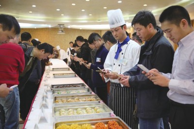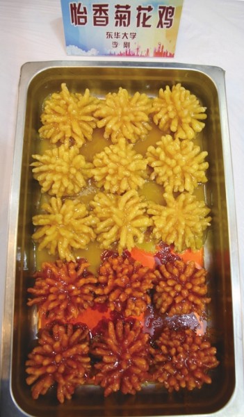 怡香菊花鸡、芝士鸭脯茄、八宝琵琶腿、川香豆花鱼……社会把高校餐饮称为“中国第九大菜系”,近日,沪上37所高校的100多位大厨选手在上海大学宝山校区集结,他们现场烹制的111道菜肴参加了第二届上海高等学校创新菜的比拼。记者了解到,为了使参赛菜品突出可操作性、推广性、营养性和普及性,参赛菜肴单价均不能超过6元。 记者 刘昕璐 双色菊花鸡色香味俱全 复旦大学大厨张长福此次带来一道“一品葫芦鸭”,利用整鸭去骨技术,去除鸭脖上的肉、淋巴等部分,只留下完整的鸭皮,随后将鸭皮用生姜等腌制,接着再将鸭肉、笋、香菇、青豆、松仁等八种素材和蒸好的糯米拌在一起,放入鸭皮,做成上小下大的形状,就像一个葫芦,最后蒸20分钟完工。在他看来,对食堂菜进行创新改革能够让学生更加喜欢来食堂吃饭。 上海师范大学厨师孙荣根以豆腐、鹅肝为原料,辅以松仁、香菜,现场制作出一碗碗“白玉鹅肝粒”。来自东华大学李刚师傅的怡香菊花鸡色香味俱全——鸡胸脯肉以高超刀工略作处理,烧制出来宛如菊花盛放,最后分番茄汁、柠檬汁两种提味的菊花鸡,呈现橙红金黄双色,令人食指大动。 华东理工大学朱振华师傅带来的是水晶鸡球,只见处理好的鸡茸成球后,裹以高质量生粉,加热调味,喷香出锅。同校的何民杰师傅则创新了一道鸡茸吉利卷。通过大片蛋皮包裹,鸡茸、马蹄、香菜调味入馅儿,卷成一个大蛋卷,下锅油炸,完成后,切成5厘米小段装盘。一经亮相,就先引来闪光灯的频频关照。 受不受欢迎学生最有话语权 上海音乐学院的果味麻花鱼、东华大学的白菜酿绣球、上海出版印刷高等专科学校的川香豆花鱼、上海海洋大学的芝士凤尾土豆丸、上海交通大学的芝士烤甘薯等,光听菜名已经让人浮想联翩。 今年大厨带来的菜品共111道,其中家禽类菜肴74个,校园人气菜肴37个。比赛将设家禽类菜肴和校园人气菜肴金奖各10%,银奖各20%,铜奖各30%。为了确保比赛的公平公正,所有评委均由具有国家级资质的专家担任。不过,为了更好了解高校学生的餐饮偏爱和喜好,此次比赛除了请烹饪大师担当专家评委外,还特别从10所高校邀请了20名学生作为学生评委。 菜肴单价不超过6元 记者了解到,上海现有各类高等学校63所,在校学生65万人,再加上非全日制学生共约80万人,上海高校有各类学生食堂400余个,承担着全市学生饮食安全和健康的重任。在沪高校学生,还有全国各地数十个民族的学生,独生子女占到65%,有关负责人直言,新形势对高校餐饮工作提出了更高的要求。 前几年,社会把高校餐饮称为“中国第九大菜系”。在此基础上的改革创新就是要让高校学生群体品尝到营养更丰富、口味更多元、色香形更具品味、食品价格更合理的餐饮供应,使大学生在有限的经济条件下,得到更优质的餐饮服务。 值得一提的是,本次大赛以家禽类原材料为主,特别强调参赛品种的可操作性和推广性(符合大赛规定的菜肴单价均不超过6元,每份重量混炒菜200g左右、块状菜100g左右),营养性(通过食材的新型搭配,确保营养均衡),普及性(被评选的菜品在所有高校都能推广和普及)。 本次大赛结束后所有获奖和优秀菜肴将会在各大高校进行巡回现场制作和展示供应,并将汇编成册进行推广,实实在在惠及全市高校学生。 >>>链接 当天人气菜前五 上海音乐学院 果味麻花鱼 东华大学 白菜酿绣球 上海出版印刷高等专科学校 川香豆花鱼 上海海洋大学 芝士凤尾土豆丸 上海交通大学 芝士烤甘薯 当天家禽类前十 东华大学 怡香菊花鸡 同济大学 粽香粉蒸鸡 东华大学 芝士鸭脯茄 上海大学 八宝琵琶腿 上海外国语大学 果仁鸡球 上海音乐学院 白玉韵味 复旦大学 一品葫芦鸭 上海理工大学 双椒小公鸡 上海外国语大学 灯笼鸡米盏 上海财经大学 时蔬鸡翅