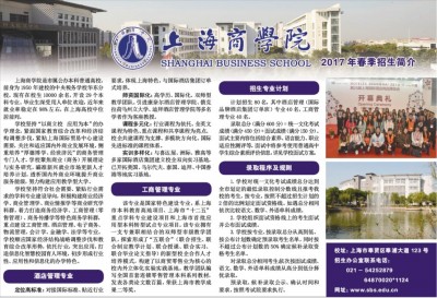 上海商学院是市属公办本科普通高校,前身为1950年建校的中央税务学校华东分校。现有在校生10000余名,开设29个本科专业。毕业生深受用人单位欢迎,近年来就业率稳定在98%左右,在上海高校中位居前列。 学校坚持“以商立校 应用为本”的办学理念,紧跟国家教育综合改革和经济结构调整步伐,紧贴上海国际贸易中心建设需要,关注和适应国内外商业发展环境,侧重培养“厚德博学、经世济民”的商务管理专门人才。学校聚焦商业(商务)开展理论与实务研究,瞄准新兴就业市场更新人才培养计划,透析国内外商业环境提升商业服务能级,努力构建应用教学型大学。 学校坚持符合社会需要、紧贴行业需求的学科专业建设导向,积极构建商业经济学、商业管理学、商业情报学等商业研究学科群, 着力打造商务经济学、工商管理(零售管理)、商务传播学等特色商务学科群,重点建设工商管理、酒店管理、电子商务、物流管理、会计学、金融学、法学等专业。学校顺应国家经济结构战略调整步伐和教育综合改革形势,依托行业,突出应用,打造信息化智慧校园育人环境,初步形成行业性、应用性和信息化的办学特色。 酒店管理专业 定位高标准:对接国际标准、贴近行业要求,体现上海特色,与国际酒店集团订单式培养。 师资国际化:高学历、国际化、双师型教学团队。引进康奈尔酒店管理学院、俄克拉荷马州立大学、迪拜酒店管理学院等多名学者作为客座教授。 课程多元化:行业课程为依托、全英文课程为特色、重点课程和共享课程为亮点、校企共建课程为支撑、多模块方向化、国际先进标准的课程体系。 实训多样化:与喜达屋、洲际、雅高等多家国际酒店集团建立校企双向实习基地,已开拓美国、马尔代夫、泰国、迪拜、中国香港等地实习基地。 工商管理专业 该专业是国家特色建设专业,系上海市本科教育高地项目、上海市“十二五”重点学科专业建设项目和上海市首批应用型本科转型试点专业项目。该专业拥有一支专兼职相结合的双师型市级教学团队,探索形成了“五联合” (联合招生、联合制定教学计划、联合授课、联合实习、联合毕业论文指导)的新型校企合作人才培养模式,构建了以商贸零售业为核心的校内外立体化实验实践基地。教学团队编写全国首套连锁零售管理本科系列教材,发表各类论文数百篇,荣获上海市教学成果二等奖。 招生专业计划 计划招生80名,其中酒店管理(国际品牌酒店集团订单班)专业40名,工商管理专业40名。 录取总分(满分600分)=统一文化考试成绩(满分450分)+面试成绩(满分150分)。面试主要内容包括综合素养、语言能力、职业适应性测评等。面试中将参考使用普通高中学生综合素质评价信息,详见学校面试方案。 录取程序及规则 1.学校对统一文化考试成绩总分达到全市划定的最低录取控制分数线且报考我校的考生,按专业,按照不超过招生计划的2倍的比例划定面试资格线。如遇总分相同依次比较语文、数学、外语单科成绩。 2.学校组织面试资格线上的考生面试并公布面试成绩。 3.学校按专业、按录取总分从高到低、按公布计划数确定预录取考生名单,同时按不超过公布计划数的50%确定候补录取资格考生名单。 对录取总分相同考生,依次按面试成绩、语文、数学、外语单科成绩从高分到低分择优录取。 预录取、候补录取公示、确认时间和要求,按照考试院要求执行。 校址:上海市奉贤区奉浦大道123号 招生办公室联系电话: 021-54252879 64870020*1124 网址:www.sbs.edu.cn
