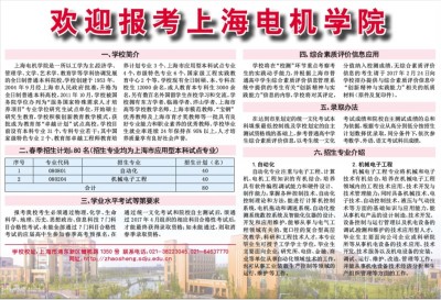 一、学校简介 上海电机学院是一所以工学为主,经济学、管理学、文学、艺术学、教育学等学科协调发展的全日制普通本科院校。学校创建于1953年,2004年9月经上海市人民政府批准,升格为全日制普通本科高校。2011年10月,学校被国务院学位办列为“服务国家特殊需求人才培养项目”专业学位研究生试点单位,开始硕士研究生教育。学校积极创新教育教学模式,获批成为教育部“卓越计划”试点高校。学校目前设有本科专业31个,专科专业若干;其中国家级特色专业2个、教育部卓越工程师教育培养计划专业3个、上海市应用型本科试点专业4个,市级特色专业6个、国家级工程实践教育中心2个等。学校现有全日制硕、本、专科在校生12000余名,成人教育本专科生3000余名,另有数百名外国留学生在校学习和交流。学校拥有东方学者、临港学者、洋山学者、上海市高等学校教学名师、上海市模范教师、“宝钢”优秀教师及上海市育才奖教师等一批具有良好专业能力和职业素养的优秀教师。学校毕业生就业率连续24年保持在95%以上,人才培养质量享有良好社会声誉。 二、春季招生计划:80名(招生专业均为上海市应用型本科试点专业) 序号 专业代码 招生专业 招生计划(名) 1080801 自动化 40 2080204 机械电子工程 40 合计 80 三、学业水平考试等第要求 报考我校考生必须通过物理、化学、生命科学、地理、历史、思想政治、信息科技7门科目合格性考试,未能全部通过7门科目合格性考试的应届高中生参加春季高考预报名,在通过统一文化考试和院校自主测试后,须通过2017年4月组织的相应科目合格性考试后,才能最终获得录取资格;如未能通过,则取消春季录取资格。 四、综合素质评价信息应用 学校将在“校测”环节重点考察考生的实践动手能力,并根据上海市普通高中学生综合素质评价信息管理系统中提供的考生有关“创新精神与实践能力”信息的内容,学校将对其评定,分值纳入校测成绩。无综合素质评价信息的考生请于2017年2月24日向学校招办提供与综合素质评价信息中“创新精神与实践能力”相关的纸质材料(原件及复印件)。 五、录取办法 在达到市里划定的统一文化考试本科填报最低控制线及学校划定的自主测试资格线的基础上,参考普通高中学生综合素质评价信息,以考生统一文化考试成绩和院校自主测试成绩的总和为依据,根据专业从高分到低分按招生计划数择优录取。同分条件下,依次参考数学、外语、语文考试科目成绩。 六、招生专业介绍 1.自动化 自动化专业注重与电子工程、计算机、电机工程知识的有机结合,培养具有软件编程、调试能力和硬件设计、制作能力;掌握各种控制技术、自动化控制理论和方法,能进行计算机控制系统、电机拖动和调速系统、自动化检测系统、数控系统及智能化仪器的设计、开发和应用维护,能够从事与电气工程领域有关的、宽口径的复合型高层次教学、科研和工程技术人才。本专业毕业生可授予工学学士学位。毕业生主要面向企业、研究所、电信、金融、商业等单位从事自动化领域技术的工作,也可从事工业装载生产控制等领域的运行、维护等工作。 2.机械电子工程 机械电子工程专业将机械和电子技术有机结合,培养在机械电子工程领域内的工程技术应用、技术开发与技术管理能力;同时具备机械技术、电子技术、自动控制技术、液压与气动技术等方面的基础知识与应用能力,能从事机电产品的设计制造、技术开发、设备控制与运行管理以及机电设备的调试、检测和维护的技术应用型人才。毕业生主要面向公司企业或科研院所等从事机电设备的技术应用、技术开发、技术服务以及机电设备的安装、调试、运行、维护、改造、管理等工作,并能从事机电设备技术经济分析和生产组织管理等方面的工作。 学校校址:上海市浦东新区橄榄路1350号 联系电话:021-38223045、021-64637770 网址:http://zhaosheng.sdju.edu.cn
