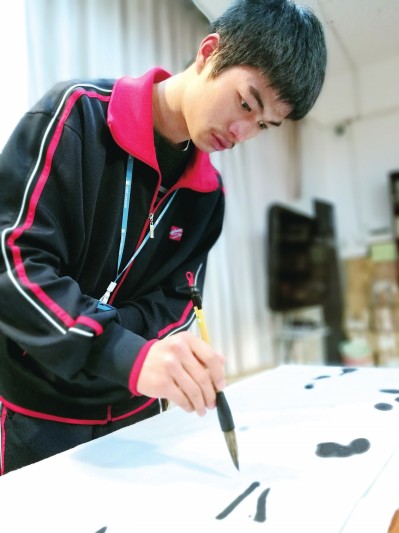 如果不是这场比赛,任行路在班上依旧是个默默无闻、沉默寡言的学生。这场比赛后,他成了班上的“红人”。 记者 徐红清 摄影 张立慈 主动报名参赛 今年10月,“薪火长征你我共传承”2016沪中职生纪念长征胜利主题系列活动在沪上中职校里如火如荼地展开,上海市工业技术学校的校园里也不例外。 班主任赵丽君在她所带的数字媒体专业二年级班上,发布了系列活动作品征集的消息:“活动有征文演讲、书画创作、动漫设计三类,同学们可以自愿报名参加。” 自由讨论时间,班上热闹起来,同学们纷纷报名自己感兴趣的项目。下课后,赵老师正准备离开教室,任行路走到讲台边轻声说:“老师,我可以参加书法、篆刻项目。” 赵老师吃了一惊,“你有书法、篆刻方面的特长?”“是的,我学书法已经5年了。”这一刻,在班上一直默默无闻的任行路,突然以一种亮眼的方式跃入大家的视线。 开启书法学习模式 在家排行老幺的任行路,幼年就跟随父母来到上海生活,初入新环境的言语不通,加上经常帮父母干农活,性格内向的他进小学后,学业成绩一直不理想,渐渐地,他在班上的存在感越来越小,变得越来越沉默。 当任行路的大哥任行志大学毕业后来到上海发展,发现小弟这个问题的时候,任行路已经快要小学毕业了。 “小弟,趁着暑假,学学书法吧。”在任行路河南老家,春节时家家户户都要写春联,任父的毛笔字经常受到村民们的称赞,受任父的影响,大哥也学了一手漂亮的毛笔字。大哥希望任行路能有一技之长,为今后的学习、生活打下基础。 兄弟俩一番谈心后,任行路开启了书法学习模式。 每天两三个小时苦练 “一开始,总是把握不好力度,一不小心就是一摊浓墨写下去了。”回顾初学书法的日子,任行路对如何把握好力道苦恼了很久。 为了能够自如地运用腕力,他向大哥讨教经验,自己琢磨方法,每天花两三个小时练习成了家常便饭,有时候走在上学路上,也会提着手腕凌空描画。两个月后,一次练字的时候,他突然就找到了运用腕力的“感觉”。 “其实,小弟是个动手能力特别强的人,做事情灵活,又勤奋。”渐渐地,大哥发现性格内向的小弟,其实是个很能静得下心琢磨事儿的人,“学书法,一坐就是两三个小时,对还是初中生的男孩来说,是件不容易的事儿,对小弟来说,却是件平常事儿。” 小触点,新起点 进入工技校后,任行路依旧是那个不引人注目的学生,这次主动报名参加书法比赛,着实让班主任和同学们吃了一惊。 而任行路也特别珍惜这个机会,酝酿、练习、向大哥讨教,正式开始创作是在一个放学后的晚上9点,大哥站在一旁指点,他开始泼墨挥毫。然后,写出来的作品,总是没法让他满意,“废了很多幅,一直写到凌晨2点多。”考虑到6点就要起床去学校上课,任行路不得不停笔休息。 “从来没有这么认真过。”这幅任行路花了十二分认真完成的隶书作品,最终在纪念长征胜利主题系列活动书画创作大赛中,荣获二等奖。 “小弟第一时间在家人群里分享了这个好消息。”大哥不掩欣喜和自豪。 “没想到任行路的书法这么好,我推荐他参加明年的全国‘文明风采’大赛。”班主任赵丽君希望任同学能在更大舞台上发挥自己的特长。 “得知获奖特别开心,书法让我找到了乐趣和自信。”任行路的眼里闪着动人的光彩,借着一场比赛的契机,他找到了一个点亮人生的窗口,正如大哥所说:“这场比赛对于小弟来说,是一个小触点,也是一个转折点,更是一个新的起点。”