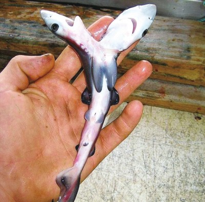 据国外媒体报道,“双头鲨鱼”听上去似乎是恐怖电影里的怪物,但科学家发现,它们在世界范围内的出现频率似乎在不断增加。还有人提出,这种变异的增加源于过度捕鱼所导致的基因异常。这一趋势似乎开始于2008年,当时一位名叫克里斯蒂安·约翰逊的渔民在澳大利亚近海捕获了一条双头的大青鲨。 2013年,美国佛罗里达州的一群渔民拖上来一条巨大的公牛鲨,将其剖开之后,发现它子宫里也有一个长两个头的胚胎。目前,大青鲨是出现最多双头后代的鲨鱼,这可能是因为它们一次可以孕育多达50条幼鲨。 更近的一个例子是,西班牙研究者在培养数百条用于人类健康研究的大西洋锯尾鲨(猫鲨的一种)时,发现了一个双头的胚胎。一位目光锐利的科学家在透明的鲨鱼卵中发现了它,具体的研究结果发表在《鱼类生物学杂志》(Journal of Fish Biology)上。