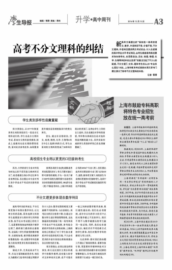 上海市鼓励专科高职将特色专业招生放在统一高考前