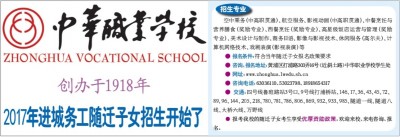 招生专业 空中乘务(中高职贯通)、航空服务、影视动画(中高职贯通)、中餐烹饪与营养膳食(奖励专业)、西餐烹饪(奖励专业)、高星级饭店运营与管理(奖励专业)、美术设计与制作、商务日语、影像与影视技术、休闲服务(高尔夫)、计算机网络技术、戏剧表演(影视表演)等 ● 报名条件:符合当年随迁子女报名政策要求 ● 咨询、报名地址:黄浦区打浦路303弄16号(近斜土路)中华职业学校学生处 ● 网址:www.zhonghua.lwedu.sh.cn ● 咨询电话:63036110、53023798、18918654317 ● 交通:四号线鲁班路站3号口、9号线打浦桥站、146、17、36、43、45、72、89、96、144、205、218、780、781、786、806、869、932、933、985、隧道一线、隧道八线、大桥六线、万野线 ● 报考我校的随迁子女考生享受优厚资助政策,欢迎来校、来电咨询、报名。