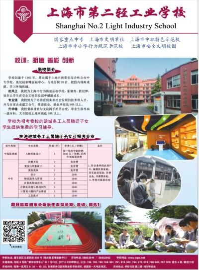 学校简介 学校创建于1982年,是隶属于上海市教委的综合性公办中专学校,地处陆家嘴金融中心,占地面积38亩,校园内绿树成荫,学习环境优越。 校风正 我校为上海市行为规范示范学校, 重德育, 抓纪律,旨在让学生在安全文明的校园中健康成长。 专业强 我校致力于培养适应未来社会发展的技术型人才,并与百家企业建立合作,推荐就业,就业率高达98%以上。 升学稳 我校秉承技能与文化两手抓的态度,毕业生报考高一级本科、大专院校上线率高达98%以上。 学校地址:浦东新区沈家弄路650号(地处陆家嘴金融中心) 咨询电话:58853844 / 58852862 学校网址:www.eqxx.net 交通路线:地铁6号线“源深体育中心”站1号口出,步行3分钟即到达。 公交:736、783、785、169、961、791、819、522、794、975、573、790、983、787、970、浦东4路、隧道六线 咨询时间:每周一至周五8:30 ~ 15:30;如需双休日及假期来校咨询报名,请提前一天电话预定。 咨询地点:学校行政楼三楼 招生荐业处