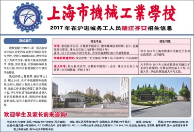 学校简介 我校创建于1959年,是一所具有50多年悠久历史的综合类全日制公办中专学校。学校占地面积60亩,教学用房达三万多平方米,拥有大量现代的教学、实验、实训设施。可容纳1800多名学生住宿,均为全新装修配有空调的学生宿舍。 我校师资力量雄厚,拥有博士2名,硕士24名,具有中高级职称的教师达93%,拥有大批的上海市优秀教师、先进工作者及优秀园丁,教学经验丰富。学生毕业后可选择就业或升入高职院校继续深造,我校历年来就业率很高,还有大批同学升入高职院校。 欢迎学生及家长前来咨询! 电话:64773208(总机)*8022 64779303(招办直线) 校址:徐汇区天等路465号(咨询地点:天等路395号招办) 邮编:200237 网址:www.shmis.com.cn 交通:轨道交通一号线转50、157、720等公交车;三号线转720、957、111、156等公交车;其他公交线路131、729、804、755、松龙线、徐梅线、沧石线、鲁莘线等,另外,各郊县专线车到上海南站后,转156公交车即到本校。