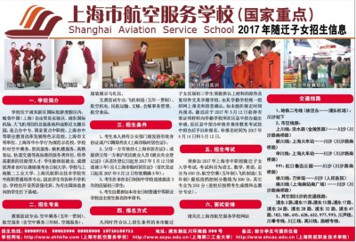 一、学校简介 学校位于浦东新区国际旅游度假区内,毗邻中国(上海)自由贸易实验区、浦东国际机场、大飞机项目的总装基地和迪斯尼主题乐园,是公办中专、国家重点中职校、上海市中等职业教育改革发展特色示范校、上海市文明单位、上海市中小学行为规范示范校。学校针对空中乘务、贵宾服务、候机楼服务、高铁客运、轨道交通等高标准的服务类岗位,培养高素质的技能型人才,学生能体面就业。成绩优秀者也可以继续报考全日制大学,学校与上海第二工业大学、上海民航职业技术学院有中高职贯通培养专业,因此学生有各种升学机会。学校也开设英语强化班,为有出国深造意向的学生打下基础。 二、招生专业 需要面试专业:空中乘务(五年一贯制)、航空服务(含空中乘务三年制、空港服务)、服装展示与礼仪。 无需面试专业:飞机制造(五年一贯制)、航空机电、民航运输、文秘、会展事务管理、航空食品。 三、招生条件 1、考生本人持有公安部门颁发的有效身份证或户口簿原件及《上海市临时居住证》; 2、父母一方有效的《上海市居住证》;或提供父母一方来沪灵活就业人员《就业失业登记证》(从首次登记日起至2017年5月12日须连续3年)且《上海市临时居住证》(首次发证日起至2017年5月12日有效期满3年); 3、考生在本市全日制初中学校连续就读3年的应届初三学生; 4、考生自愿参加本市全日制普通中等职业学校自主招生报名的申请书。 四、报名方式 凡同时符合以上招生条件的本市随迁子女应届初三学生须提供以上材料的原件及复印件交其学籍学校,由其学籍学校统一组织网上报名和信息确认。如未能在规定时间内报名,最迟应于2017年5月12日前持有效证明材料向学籍学校所在区县中招办提出申请,经区县中招办审核并报市教育考试院中招办后予以补报名。补报名时间为2017年4月14日和5月12日。 五、招生考试 须参加2017年上海市中职校随迁子女入学考试,考试科目为语文、数学、英语,总分为450分。航空空乘(五年制)、飞机制造(五年制)最低投档控制分数线为300分,其它专业为250分(进校后按照考生成绩和志愿分专业)。 六、面试安排 请关注上海市航空服务学校网站 交通线路 1、地铁二号线(徐泾东——浦东机场):川沙站下 2、市区线路: 上川线:淡水路(金陵西路)——川沙(川沙路南桥路) 新川线:上海火车站——川沙(川沙路南桥路) 申川线:上海火车站——川沙(川沙路南桥路) 991:虹口鲁迅公园——川沙(川沙路南桥路) 徐川线:万体馆——川沙(人民医院) 南川线(上海南站南广场)——川沙(川沙路南桥路) 3、其它到川沙的交通线路: 浦东3路、浦东11路、浦东13路、浦东17路、浦东24路、浦东28路、浦东32路、浦东41路、182、188、615、628、632、977、993、川芦线、川奉专线、川三线、高川线、施崂专线。 招生热线:58989721 58922996 58925906 15710156711 地址:浦东新区川环南路266号 备注:部分学生可提供住宿 学校网址:http://www.shhkfw.com(上海市航空服务学校) http://www.sspu.edu.cn(上海第二工业大学) http://www.shcac.edu.cn(上海民航职业技术学院)