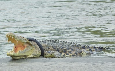 巨鳄惨遭轮胎套脖