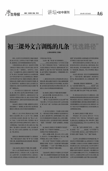 原本,文言学习可以牵发的学生兴趣点是挺多的,如:古代文化、文学常识,作者生平逸事、历史故事、成语掌故,以及可推荐阅读的相关作品书目。 可现实的状况是,课外文言一直是学生日常练习和语文中考的失分重点,所以学生戏言,初中学习语文,有三怕:“一怕周树人,二怕写作文,三怕文言文。”文言赫然在列。而面对已经被同学们“妖魔化”的、视为“洪水猛兽”的课外文言,如果我们能从中考考试手册中对文言文的要求出发:了解相关文学常识和作品作者,掌握实词和虚词,读懂文章的基本内容,理解作者的写作目的和写作情感,然后,带着同学们一起梳理出几条行之有效的文言训练的方法,相信可以把同学们从毫无头绪的“桎梏”中解放出来。 一、可以标注出文言篇章中的一些基本信息,如:人物、时间、地点等。我们常常发现,文言的阅读障碍并不在主要情节上,而恰恰是存在于这些信息中,特别是古代的人名、地名,有些并不是我们熟识的常用字,这时对这些信息加以处理,就显得很有必要了。 如2016年上海语文中考题,这篇课外文言短文的长度稍长于一般情况,而人物、时间、地点等信息量较多,拿到文章,首先可对基本信息梳理如下: 陆象山(人名)少年时,常坐临安(地点)市肆观棋,如是者累日。棋工(人名)曰:“官人(指陆象山)日日来看,必是高手,愿求教一局。”象山(人名)曰:“未也。”三日后(时间)却来,乃买棋局一副,归而悬之室中。卧而仰视之者两日(时间),忽悟曰:“此《河图》数也。”遂往与棋工对,棋工连负二局。乃起谢曰:“某(指棋工)是临安第一手棋,凡来着者,皆饶一先。今官人之棋,反饶得某一先,天下无敌手矣。”象山笑而去。 梳理过后,顿时感觉内容清楚不少。特别是在“棋工”最后这段话中,确定“某”和“官人”分别指代的人物,进而能明确说这段话的意图,帮助我们完成文后理解性的习题。 又如:2005年上海语文中考题:《郑人逃暑》 郑人(人名)有逃暑于孤林之下(地点)者,日流影移(时间点),而徙衽以从阴。及至暮(时间点),反席于树下。及月流影移(时间点),复徙衽以从阴,而患露之濡于身。其阴逾去,而其身逾湿,是巧于用昼而拙于用夕矣。 文后有一题:“郑人的‘拙’具体表现在____________。(用自己的语言表达)”文中其实已有提示:“是巧于用昼而拙于用夕矣。”当我们标注完相关信息,特别是几个时间点后,能轻松地发现“及月流影移”后,就是“拙于用夕”的具体内容,再进行概括,就不难得出“夜晚也像早上一样跟着树阴,却全身湿透了”的答案了。 二、我们应充分应用文后所给的注释。因为文章的注释,都是出题者考虑学生可能会遇到阅读障碍的字词,或者必要的文学常识和物品、地点的注解。如果我们适时地将这些注释放回到文章中,再读短文,势必可以降低阅读和理解的难度。 如:2006年上海语文中考题:《秦西巴纵麑》 孟孙猎而得麑,使秦西巴持归烹之。……[注释]①纵麑:放走小鹿。麑:小鹿。 “麑”字,不是我们常用字词,但在注释①中给了我们释义,何不在自己阅读过程中,就将其置换为“鹿”或者“小鹿”?这样能极大提升阅读的顺畅度。 三、还可以大致划分一下这篇文言短文的层次。一般在我们日常练习和模卷中选用的课外文言,基本上都是情节性、故事性较强的,所以,我们完全可以根据故事发生的起因、经过、结果(高潮)来划分短文层次。这在提问事件或者人物表现的“原因”、“具体表现”、“结果”这类题型上,特别适用。 如:2006年上海语文中考《鲍君》中有这样一道习题,“本主‘不敢持归’的原因是__________。”可先将短文作如下段落划分(部分): 昔有人设罝以捕獐,得而未觉。有行人窃取之,犹念不仁,乃以鲍鱼置罝中而去。/本主来,于罝中得鲍鱼,怪之以为神,不敢持归。/…… 其中,寻找“不敢持归”的原因,必然应该回溯到前文和前一层次中,于是我们便不难找出最初“设罝以捕獐,……”后却“于罝中得鲍鱼,怪之以为神”,是导致其“不敢持归”的根本原因。 又如2010年上海语文中考课外文言中有这样一题:“有人劝说顾亭林彻底消灭家中的老鼠,原因是 。(用原文语句回答)”我们同样可以按照“交代故事背景、故事的起因、事件的发展和结局”将短文大致分为如下所示的三部分: 顾亭林居家恒服布衣,俯身者无寸缕之丝,/当著《音学五书》时,《诗本音》卷二稿再为鼠啮,再为誊录,略无愠色。/有劝其翻瓦倒壁一尽其类者,顾曰:“鼠啮我稿,实勉我也。不然,好好搁置,焉能五易其稿耶?” 在这里,我们从前一层次中可以顺利找到其原因——“《诗本音》卷二稿再为鼠啮”。每次刚写完的作品,都会给老鼠咬坏,友人当然建议要一网打尽了! ‘鼠啮我稿,实勉我也’表现顾亭林_______的心态,‘五易其稿’则表现了他_______的态度”正是人物动作和语言对应人物精神品质的典型题型,应该是“乐观、洒脱”的心态和“严谨、认真”的态度。 四、我们还应该关注短文中人物的言行。人物的精神品质和性格特征都是通过他们的具体表现得以彰显的。我们关注人物的动作行为和语言,就可以顺利解答概括人物形象这类的典型题型了。这里需要提醒的是,我们总能关注到人物的动作,但对于语言对话中所流露的信息,往往容易忽略,这点要特别加以重视。 如:2008年上海语文中考题:《误认》 卓茂尝出门,有人认其马。茂问之