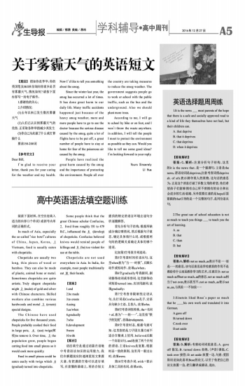 阅读下面材料,在空白处填入适当的内容(1个单词)或括号内单词的正确形式。 In much of Asia, especially the so-called“rice bowl”cultures of China, Japan, Korea, __1__ Vietnam, food is usually eaten with chopsticks. Chopsticks are usually two long, thin pieces of wood or bamboo. They can also be made of plastic, animal bone or metal. Sometimes chopsticks are quite artistic. Truly elegant chopsticks might __2__ (make) of gold and silver with Chinese characters. Skilled workers also combine various hardwoods and metal __3__ (create) special designs. The Chinese have used chopsticks for five thousand years. People probably cooked their food in large pots, __4__ (use) twigs(树枝)to remove it. Over time, __5__ the population grew, people began cutting food into small pieces so it would cook more quickly. Food in small pieces could be eaten easily with twigs which __6__ (gradual) turned into chopsticks. Some people think that the great Chinese scholar Confucius, __7__ lived from roughly 551 to 479 B.C., influenced the __8__ (develop) of chopsticks. Confucius believed knives would remind people of killings and __9__ (be) too violent for use at the table. Chopsticks are not used everywhere in Asia. In India, for example, most people traditionally eat __10__ their hands. 【答案】 1.and 2.be made 3.to create 4.using 5.as/when 6.gradually 7.who 8.development 9.were 10.with 【解析】 语法填空是通过语篇在语境中考查语法知识的运用能力。我们在解题前应快速浏览短文掌握大意,有把握的空格可以进行填写。在读懂的基础上,再结合短文提供的特定的语言环境去逐句分析逐题解答。 首先分析句子结构,根据所缺成分确定哪类词。然后根据句子意思,确定具体填什么词,或根据两句间的逻辑关系确定具体用哪个连词。 比如第1空考查并列连词; 第5空考查时间状语从句,这里when意为“当……时候”,后跟长动作或短动作,故填as/when; 第6空gradually考查副词。副词修饰动词或形容词,这里修饰动词短语turned into,应该用副词,故填gradually; 第7空考查非限制性定语从句,先行词是Confucius孔子,定语从句缺少主语,且指人,故填who; 第8空考查词性转换。the+名词+of,意为“……的……”,这里指“筷子的发展”,故填development; 第9空考查时态。根据句意可知,这里指的是刀子因太暴力而不适合在餐桌上使用,believed后跟一个宾语从句,and连接了两个并列的谓语,主语knives是复数,根据时态一致的原则,这里用一般过去时,故填were; 第10空考查介词,with+表示具体工具的名词,故填with。