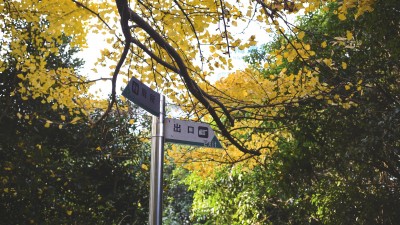 家不远处的公园中,银杏叶早已变得金黄。在阳光的照射下,指示牌显得不突兀,却添加了几分浓厚的意境,仿佛是电影中的场景就浮现在我们眼前。