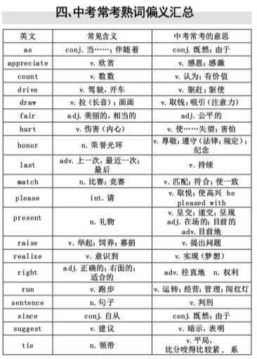 一、完形填空考察点 (1)完形填空是对文章理解能力的考查。 (2)完形填空要求考生不仅要会运用自己学过的词汇和语法知识妥善地处理好每个单句,理解语义,还要处理好单句之间以及单句与全文之间的内在关系,选出适当的词填上,使文章完整与通顺。 (3)完形填空题要求填入的词主要有:构成各种时态和用法区别的动词及短语动词;名词和介词;根据上下文意思及结构必须填入的形容词、副词、代词和连词;同义词、近义词等易混词。考查以实词为主,兼顾虚词和语法结构。难点主要集中在根据上下文作正确判断的词的用法上。 三、经典例题 1.连词 例题1:We wish that we could be better at sports or more attractive. We wish we had nicer clothes or more money. Everyone likes to feel that lie or she is special. __75__ , many of us grow up believing that we’re not special at all. We believe we are not good enough just as we are. (2014) 75. A.Again B.Next C.Besides D.However 解析:每个人都感觉他是独特的。我们中很多人在成长过程中认为我们自己一点都不独特。显然和上文的意思不一样,故只能用D.However,表示转折。 2.形容词 例题2:We begin to believe that the only way we can be special is by being better than someone else, but we are often ___77___ . (2014) 77.A.lonely B.forgetful C.disappointed D.nervous 解析:我们开始相信我们能够变得独特的唯一方法是我们比其他人都优秀。but关键词表示转折,但是我们经常是失望的,说明我们没有变得独特。故选C。 3.名词 例题3:Right or left? In your life there will be times when you have to make a __79__ .(2015) 79. A.living B.decisionC.mistake D.wish 解析:右还是左?在你的生活里总会有必须做决定的时候。根据上下文意思只能是B. decision。 4.副词 例题4:The reason is that the police there are very strict and the pedestrians are very careful. Pedestrians never cross against a red light and they __77__ follow traffic rules.(2010年) 77. A.even B.never C.almost D.always 解析:第一句话为本句的主旨句,“行人都很小心”,下面给出了具体解释,因此“从来不闯红灯”和“总是遵守交通规则”,只有always符合句意,其他几项不符合语言逻辑。因此本题答案是D。 5.介词 例题5:We all want the things that we believe will make us better people. But very often we don’t realize that we already have __79__ us the very things that we want.(2014) 79.A.inside B.amongC.around D.for 解析:inside在……里面,among在……之间(三者或三者以上),around在……周围,for对于。但是我们经常没有意识到我们已经有了想要的东西。因此本题答案是A。 6.动词 例题6:After being there for a short time,Mrs. Walter __75__ to her next-door neighbor. She was hoping the neighbor would repeat her dissatisfaction to the store owner.(2016) 75.A.explained B. apologized C. listenedD. complained 解析:explain解释,apologize向……道歉,listen听,complain向……抱怨,向……投诉。从后文她希望邻居可以把她的不满意向店主转告,可知Walter女士向她的邻居抱怨。故选D.complained。 7.词组 例题7:“Well,no,”the neighbor said,“__79__ and I hope you don’t mind I told him you were amazed at the way he had built up this small town store, and that you thought it was one of the best-run stores you’d ever seen.”(2016) 79.A.for exampleB.at least C.in fact D.after all 解析:for example举例,at least至少,in fact实际上,after all毕竟。and I hope you don’t mind作为插入语,意思为我希望你不要介意。“没有,”邻居说,“我告诉他你很吃惊他如何做好这家小镇商店。”根据上下文意思应该选C. in fact。