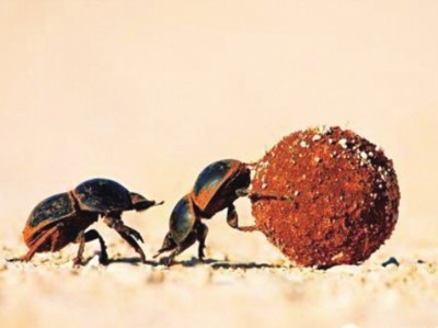 如果没有手机地图,当你迷路的时候会靠什么寻找方向?如果要问屎壳郎,它会选择抬头望天。因为对它而言,不同方位天空中起伏变幻的光就犹如指南针,白天的绿光和紫外线光足够为它引路。 来自瑞典隆德大学的研究团队,对于“地面上的屎壳郎为何要抬头望天”充满兴趣。在实验室测试中,身处黑暗房间的圣甲虫(粪金龟)在一种或两种颜色的LED灯光指引下,试图沿一条较直的路径运动。这些甲虫并非通过标志来明确自己的方位,而是通过仰望天空寻找线索,比如看太阳的位置。研究人员于不久前在《生物学通讯》杂志上指出,根据这项首个致力于探究颜色是否指引甲虫活动的测试表明,甲虫对阴天拥有一套“应急备用系统”。