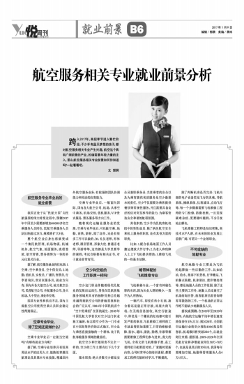 跨入2017年,高招季节进入繁忙阶段。不少怀有蓝天梦想的孩子,都对航空服务相关专业产生兴趣,航空这个具有广阔前景的产业,的确需要年轻力量的注入,那么航空服务相关专业前景如何你知道吗?一起看看吧。 文 郭漪 航空服务专业毕业后的就业前景 我国正处于从“民航大国”向民航强国的伟大转变过程中。预测2017年中国至少需要新增加40000多名空乘服务人员岗位,民航空乘服务人员队伍将超过25万,规模将扩大5倍。 整个航空业自身也将演变成一个集民航管理、机场物流、机械机务、航空气象、地面服务、流程签派、航空营销、票务销售为一体的多元化复式行业。 据了解,航空服务就业岗位包括:1.空乘:空中乘务员、空中保安员;2.地勤:值机员、安检员、广播员、售票员、行李查询员、贵宾室服务员。就业方向有:国内外各大航空公司、地方航空公司、民营航空公司、外航服务公司、各大机场,大中型企、事业单位等。 因其专业性和供应不足,国内主流航空公司优秀空乘人员职业稳定性得到保证。 空乘专业毕业,除了空姐还能做什么? 空乘专业毕业后一定能当空姐吗?有哪些就业方向呢? 据了解,空乘专业培养具有较高英语水平的应用人才,能熟练掌握民航理论及其基本专业技能,精通国内外航空服务业务,有较强的团队协调能力和灵活的应变能力。 空乘专业毕业后,一般面向国际、国内各大航空公司、机场,从事空中乘务、机场安检、值机服务、VIP贵宾服务、票务服务等方向工作。 随着现代运输业服务业的发展,空乘专业毕业后,可以做空乘、地勤、高铁、游轮,除了这些,还是有很多工作可以做的,如:礼仪老师、形体老师、酒店管理、形象大使、普通话老师、导游等等。这些都是大学里要学的课程,考试合格都有相关证书,对于就业非常有用。 空少和空姐的工作职责一样吗? 空少这门职业伴随着现代民航业的发展应运而生,男性在民航客舱服务领域所具有的独特优势已经越来越得到航空公司的普遍重视和社会的广泛认可。2004年中国民航首个“空中男乘组”在国航诞生,2009年中国民航大学首次对空少这门职业独立编班,标志着空少作为一门专业在中国高等学府的正式确立。空少是与乘客直接接触的一个群体,处于民航客舱服务领域的最前沿。 航空空少和空姐职责不完全一样的,空少的工作主要有以下几个方面。 基本职责:绝大多数空少都是安全员兼职乘务员,负责乘客的安全以及为乘客提供优质服务是空少最基本的责任。空少不仅需要为乘客提供餐饮等常规性服务,并且需要具备良好的应对突发事件的能力,为乘客营造安全和谐的航程氛围。 其他职责:空少作为民航客机机组中的男性成员,除了承担航空安全和机上服务的职责,还有其他方面的职责。 比如:1.配合机场地面工作人员搬运摆放大件行李;2.为老人和残障人士上下飞机提供帮助;3.维修飞机的一些基本故障。 略带神秘的飞机维修专业 飞机维修专业,一个富有神秘色彩的名词,因为从业人群的稀少,一直不为人所熟知。 一辆汽车,即使有些小毛病,凑合着还是能正常行驶。而庞大的飞机,在无线信息接收、高空行驶途中,即使是一个螺丝的松动都可能引发严重的事故,飞机维修工程师的工作就显得更加重要了。日常的维修保障,防水、通风、清洗、除锈、补漆等都需要维修工程师们参与进来。庞大的飞机,全英文的飞机维修手册,是工程师们日夜要面对的。厂家随时更新内容,公司时常举办的培训课程,都要求工程师们能时时学习,不断提高。 除了判断机身是否完好,飞机内部的电子设备更是飞行的灵魂。导航系统、操纵系统、仪表通讯、自动飞行等,每一个步骤都需要飞机维修工程师的专门检修,防微杜渐。一旦发现疑难杂症,更要随叫随到,不分日夜地去解决。 飞机维修工程师是知识密集、高技术水平人群,在未来的职业发展上前景广阔,可谓又一个金领职业。 不可或缺的地勤专业 航空地勤专业主要是为飞机的起降做一些后勤的工作,比如给油、给水、旅客下机登机、行李搬运、飞机餐点装载、机身清洁、废弃物处理等,都是地勤人员的工作范围,除了这些主要的工作外,地勤人员还兼任了机场问询回答、旅客航班信息咨询等零零散散的工作,一个机场的正常运作绝不能缺少地勤服务人员。 据权威预测,在2011年至2020年期间,内地航空运输平均年增长速度将保持在11%左右;到2020年,全国航空运输行业将至少拥有4000架各型客机;机场数目将突破220个。从就业岗位来看,据报道,2009-2020年全国民航行业将净增就业岗位50万-70万个。也就是说其后的20年内,我国每年需增加空姐、地勤等管理服务人员4万-5万人。