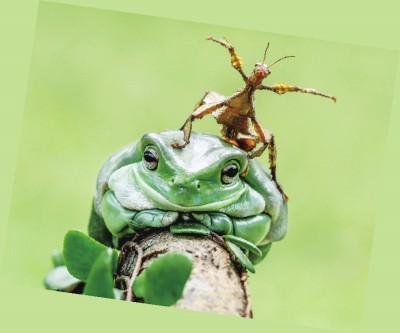 印尼雅加达摄影师Tanto Yensen外出时偶遇一对奇特的好友组合——一只竹节虫和一只蟾蜍,好笑的是,这只竹节虫不仅在好友身上搭便车,张牙舞爪的样子远远看上去就像是策马扬鞭,而被当马骑的蟾蜍则十分耐心地驮着好友任它欺凌,画面十分搞笑。