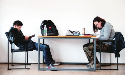作品说明:面对面坐的两个人,没有交谈,没有对视,有的只是一起享受安静的环境,体会各自书中的知识。互不打扰,相对无言,此时无声更胜有声。