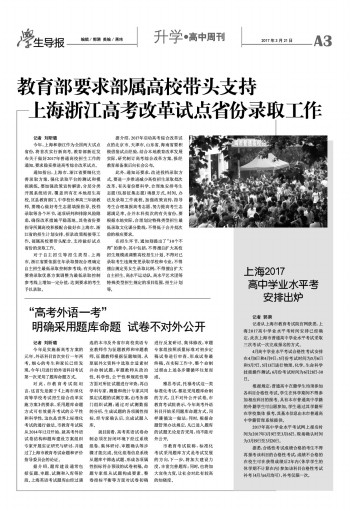 教育部要求部属高校带头支持上海浙江高考改革试点省份录取工作