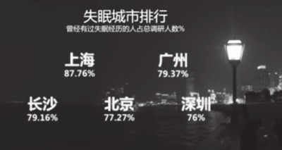 80% “失眠知多少?——失眠行为网络大调查”调研结果暨《2017年中国网民失眠地图》16日在北京发布。调研结果显示:近80%的参与者曾有失眠经历,其中上海、广州比例最高,长沙、北京、深圳紧随其后,有失眠经历的人群中入睡困难是最主要的失眠表现;超过57%的调研参与者不能全面了解失眠危害,仅4.5%的参与者认为出现失眠应该马上治疗。研究显示,失眠与肥胖、糖尿病、高血压、中风等疾病的发生有直接关系,甚至有可能导致乳腺癌和前列腺癌等癌症发病率增高。 2% 中国信息通信研究院公布的数据显示,2016年国内手机市场出货量为5.6亿部,但旧手机回收率不足2%。业界预测未来几年中国每年更新的手机数量可能会达到4亿至5亿部,而此前我国已经沉积了约10亿部废旧手机。