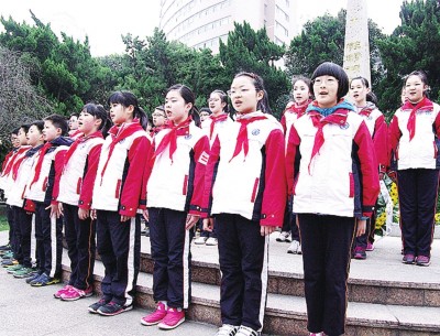 清明时节雨纷纷,黄花祭亲人,热泪盈眶祭英魂。清明节前后,上海多所小学的少先队员们进行了各种形式的祭扫活动。 青浦重固小学:福泉山遗址祭英烈 重固小学组织大队部和三(1)小宇宙中队来到了福泉山遗址进行“清明时节忆先烈”活动。队员们沿着蜿蜒小路来到了烈士墓碑前,带着沉重的心情默哀1分钟,缅怀先烈。随后,队员们一个个献上自己准备的纸花祭拜先烈,这不仅仅是一朵花,更饱含着队员们对他们的崇敬之意。最后在中队长的带领下,队员们一起庄严宣誓:继承先烈遗志,发扬优良传统,先烈们的精神将永远激励队员们前行。 徐汇交大附小:祭扫烈士墓 前不久,徐汇区交大附小全体师生怀着无比崇敬的心情,徒步到交通大学烈士墓前,开展了“缅怀革命先烈,弘扬民族精神”祭扫交大烈士墓活动,号召同学们时刻铭记烈士们为解放国家和民族而不惜牺牲的大无畏精神。 苍松翠柏环绕的烈士墓显得格外庄严肃穆,同学们神情庄重,静静地肃立在穆汉祥、史宵雯烈士纪念碑前。同学们怀着崇敬的心情为革命先烈敬献鲜花,向长眠于地下的革命先烈鞠躬默哀,寄托无尽哀思。在辅导员的带领下,同学们排着整齐有序的队伍瞻仰烈士墓。 同学们在庄严肃穆的乐曲声中立下志向,祝福与希望在每个人的心中绽放。 浦东新区昌邑小学:网上祭英烈 昌邑小学的学子们则在清明小长假期间,通过组织开展“网上祭英烈”网上祭扫活动,营造简洁、环保、低碳、文明的祭祀新风。队员们在网上向先贤先烈鞠躬献花,抒写感言寄语,表达对先烈、先人的感恩和敬仰。