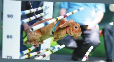 日前,约100只兔子在捷克克罗梅日什狩猎展期间参加了田径比赛,其中包括跳远、跳高、跑步等项目。