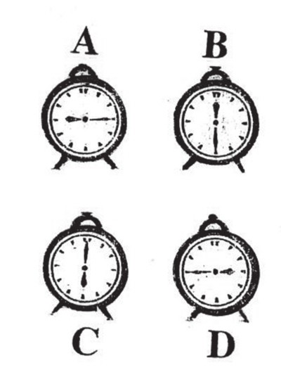 A、B、D三只闹钟需要修理,因为时针指时都不准确。