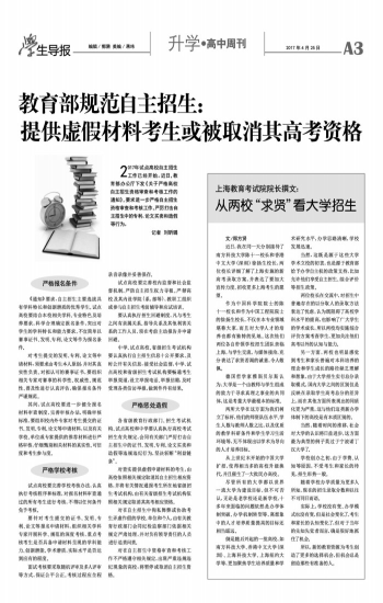教育部规范自主招生:提供虚假材料考生或被取消其高考资格